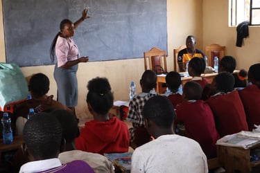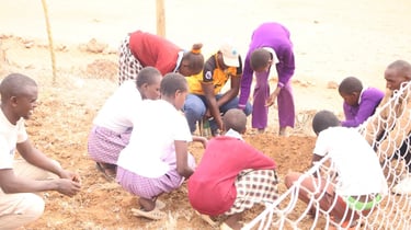 School gardens are a vital initiative to enhance both education and nutrition. By creating gardens within schools, we teach students practical agricultural skills while supplementing school meals with fresh produce. The image on the left is our first school garden in Ng'abolo Primary School which serve as living classrooms, where students learn about the environment, agroecoogy, and the importance of self-sufficiency, nurturing a new generation committed to sustainability.